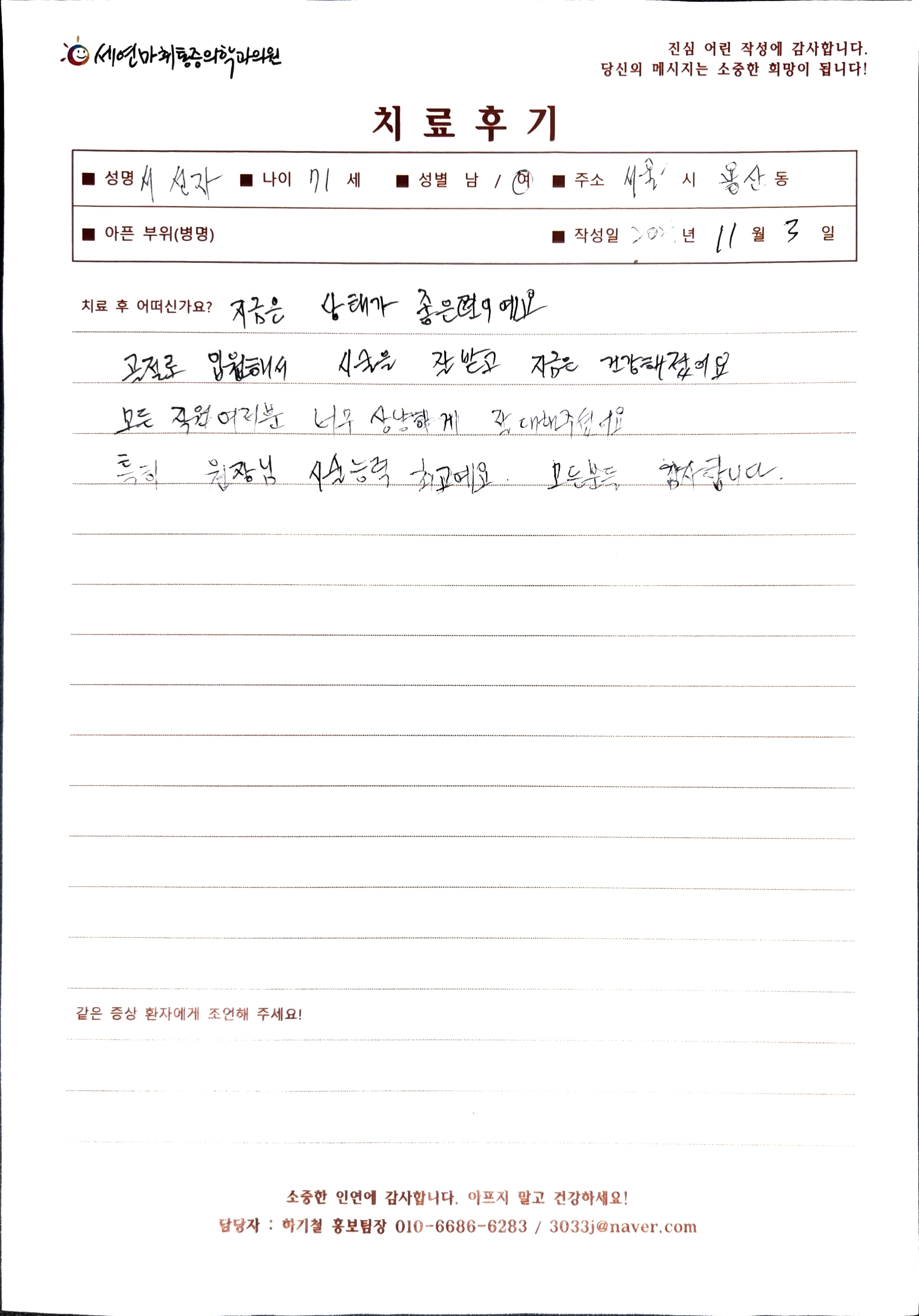 *서*자님의 골절 치료 후기입니다.*성명 :&nbs...